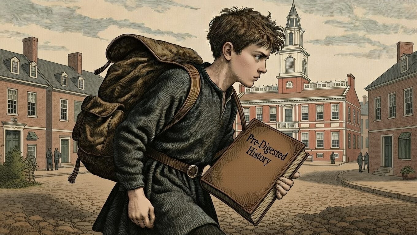 There’s a reason your child’s history textbook weighs six pounds but contains almost nothing worth remembering. There’s a reason the original documents that shaped Western civilization have been replaced by cheerful summaries written at a fifth-grade reading level. There’s a reason students can graduate from elite universities without ever reading a single complete work by the founders of their own republic.