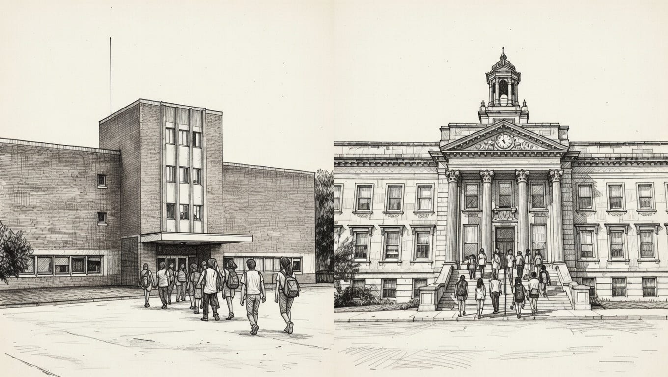 Wolfe’s genius lies in both identifying this problem and in skewering the pretensions behind it. Modernist architects, he notes, spoke endlessly of function while producing buildings that functioned poorly. They rejected symbolism while imposing their own severe and unmistakable ideology. They claimed to serve the masses while showing open disdain for popular taste. Schools designed under these assumptions invariably reflected the same contradictions. They were meant to be efficient and forward-looking but ended up strangely hostile to the students they were built to serve.